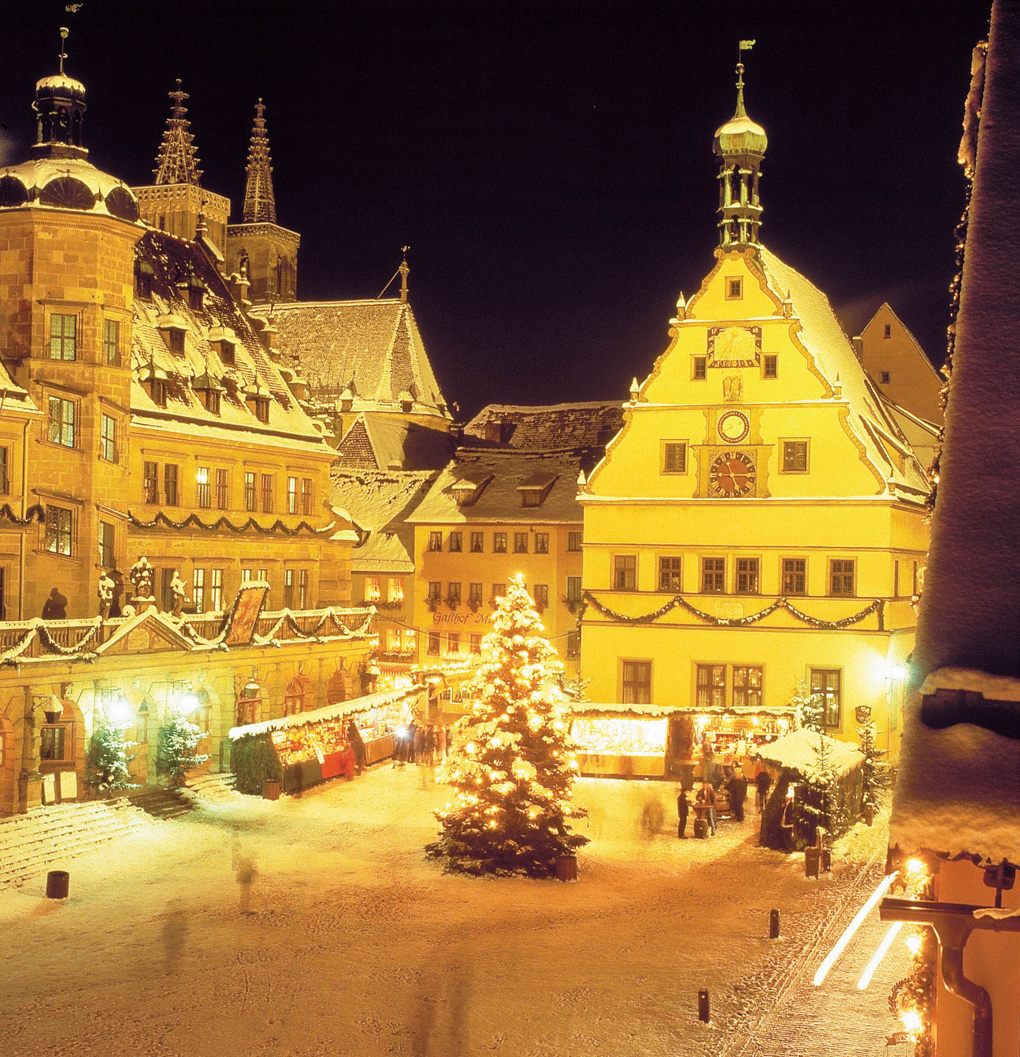 Le sue viuzze strette e lastricate, le dimore con pignoni a punta, le fontane e gli edifici storici ricreano perfettamente l’atmosfera che regnava nel periodo medievale. Molte le cose da vedere, tra cui la cinta muraria costellata di torri, le Porte d’ingresso alla Città, la Markt Platz su cui si affaccia il Municipio con la famosa taverna e la St. Jakob Kirche del 1373 con uno splendido altare intagliato di Tilman Riemenschneider. |