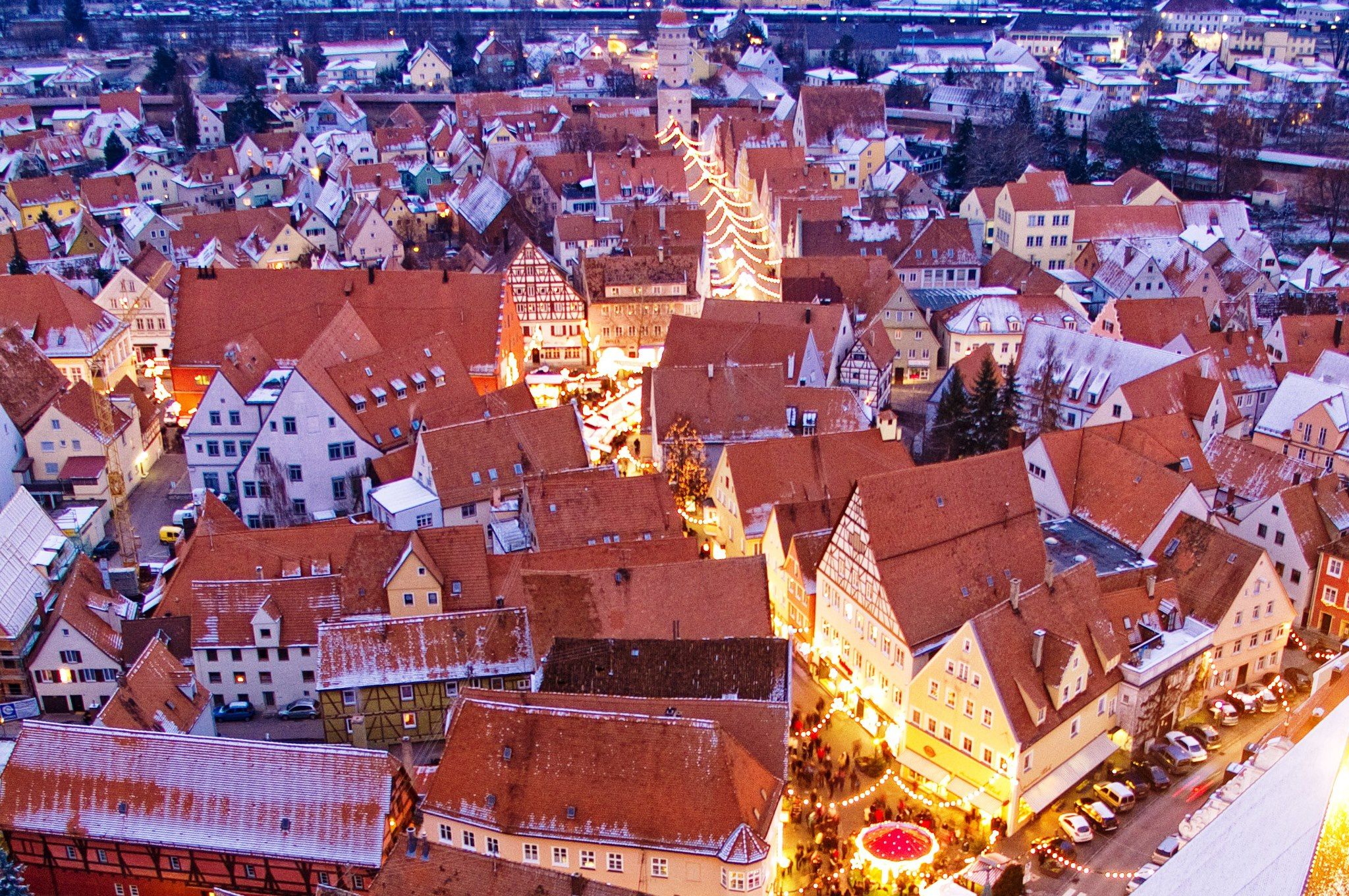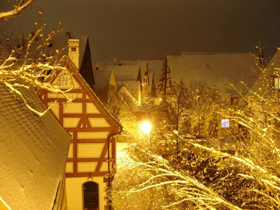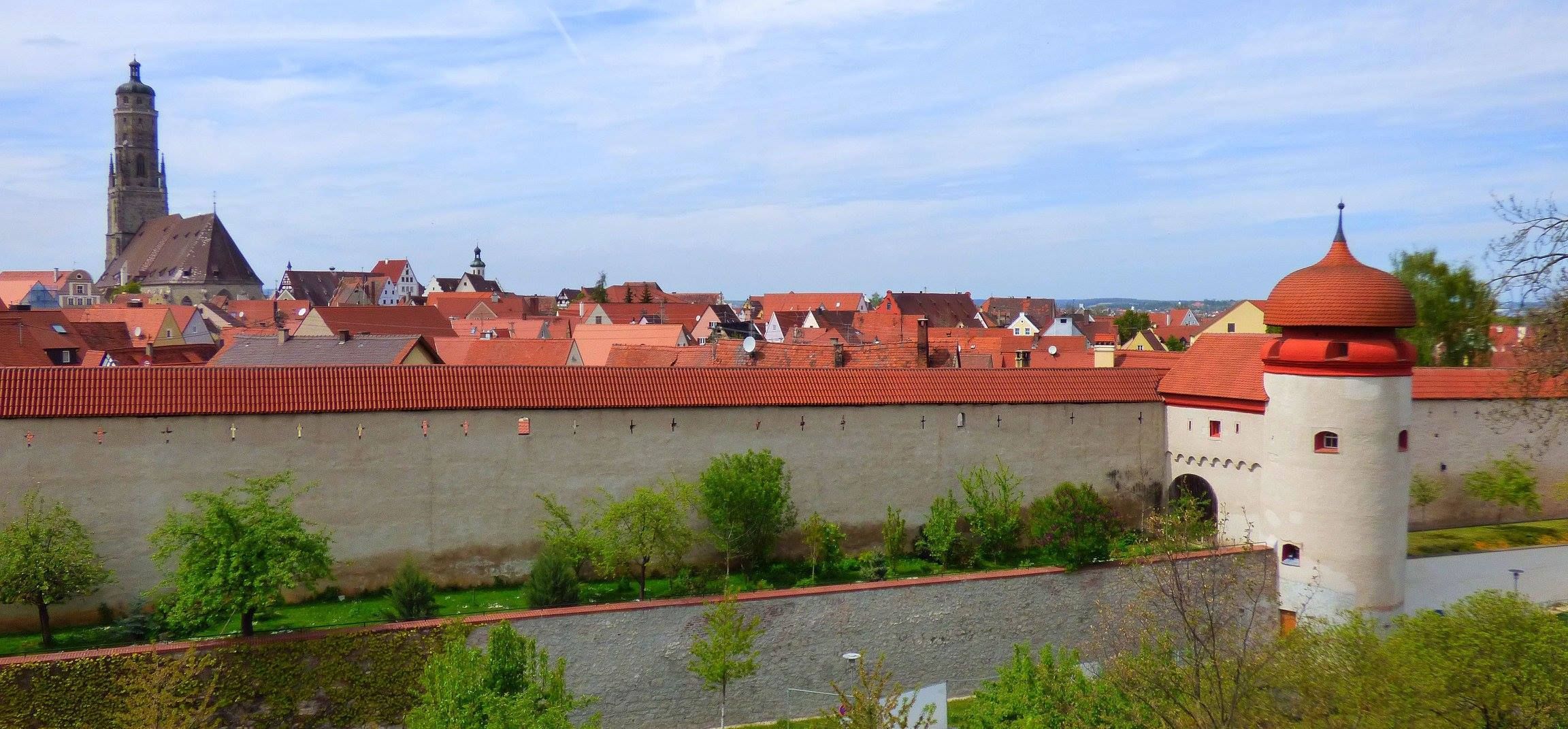 Appena si scorge all’orizzonte il “Daniel”, l’alta torre campanaria della chiesa di San Giorgio, si sa che poco manca alla nostra destinazione. Da qui il Guardiano della Città fa sentire ogni notte, ogni mezz’ora la sua parola d’ordine Medievale “So, G’Sell So” (… basta garzone, basta). La città è posta al centro di una pianura circolare, il Ries, un enorme cratere provocato dalla caduta di un meteorite circa 15 milioni di anni fa. |