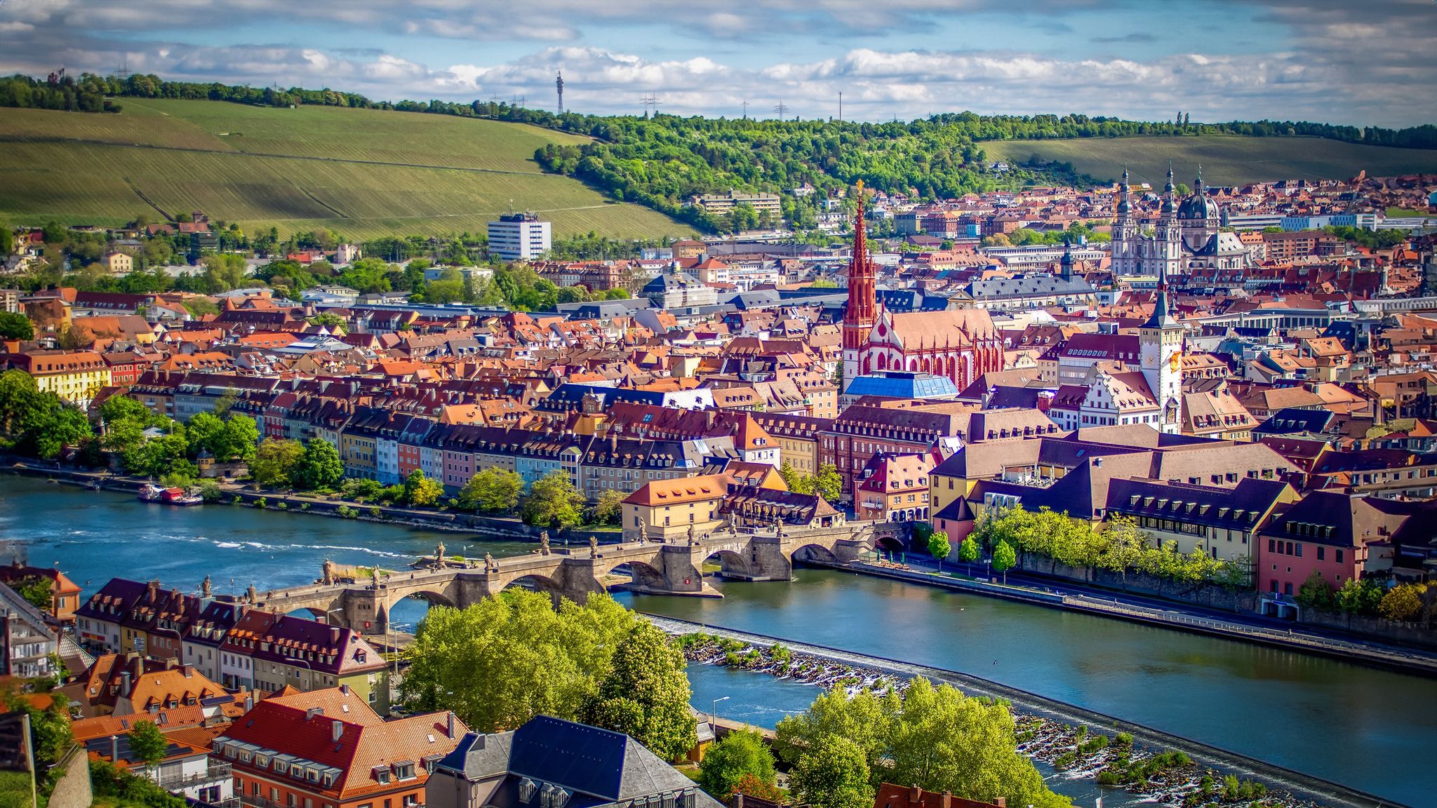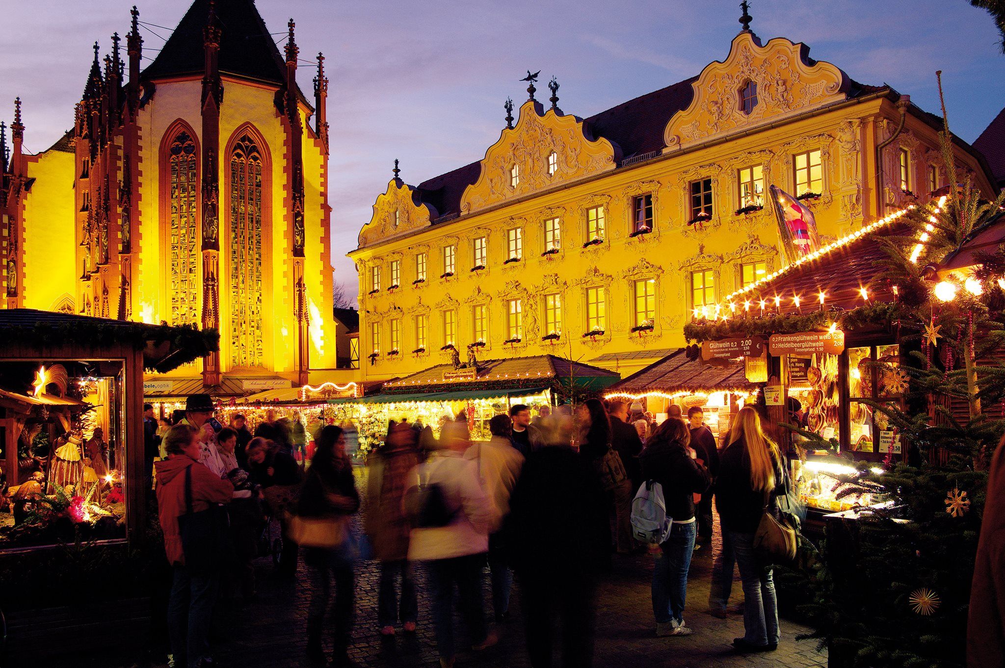 Potremo ammirare il Duomo con le sue 4 torri, una delle maggiori chiese romaniche della Germania, abbondantemente decorato in stile barocco nel XVIII secolo per volere dei Principi Vescovi, che qui sono sepolti in monumentali tombe opera di importanti artisti quali Balthasar Neumann e Tilman Riemenschneider. |