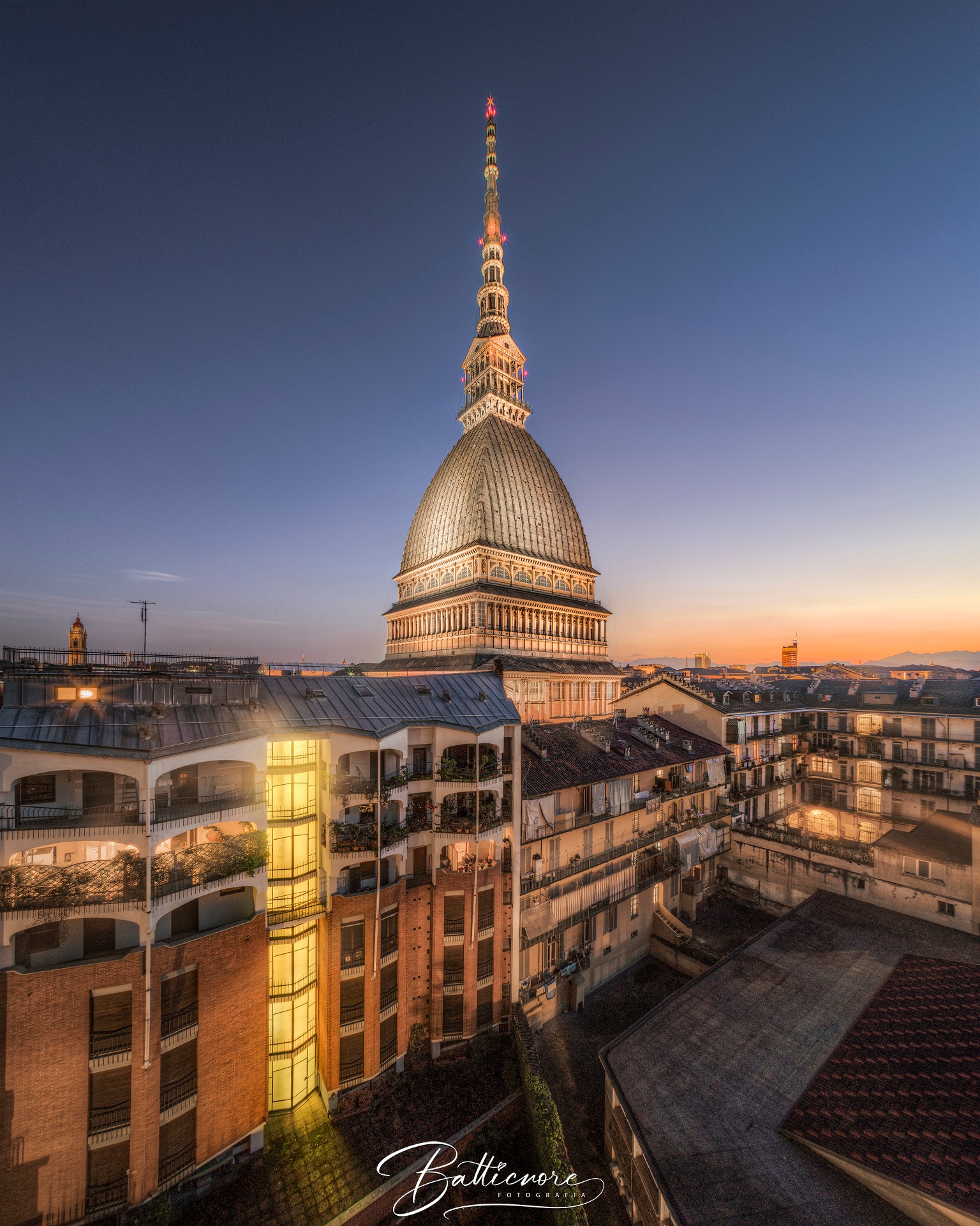 | La visita guidata comprenderà anche la salita a bordo dell’ASCENSORE PANORAMICO alla Cupola della Mole Antonelliana fino ad arrivare a 85 m di altezza, dove dal TEMPIETTO è possibile godere di una vista a 360 ° della città di Torino dall’alto. |