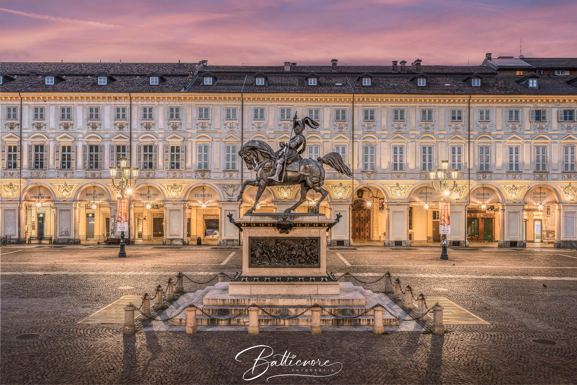 | In particolare potremo ammirare la vasta Piazza Castello, cuore del centro storico, circondata da prestigiosi palazzi a portici, Palazzo Madama, storica dimora di Madama Reale Maria Cristina, vedova di Vittorio Amedeo I, Piazza San Carlo, il Duomo, con facciata rinascimentale in marmo bianco e all'interno la Cappella della Santa Sindone e gli esterni di Palazzo Reale, residenza fino al 1865 dei membri di Casa Savoia. |